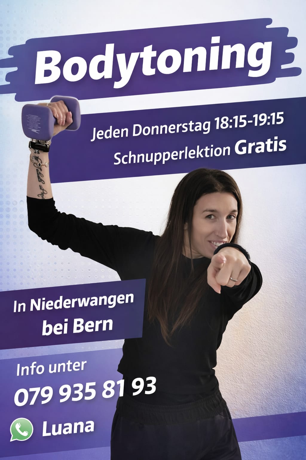 Jeden Donnerstag von 18.15 - 19.15 Uhr bietet Luana Bodytoning Kurse an. Bodytoning trainiert den ganzen Körper, formt ihn und gibt neue Energie.